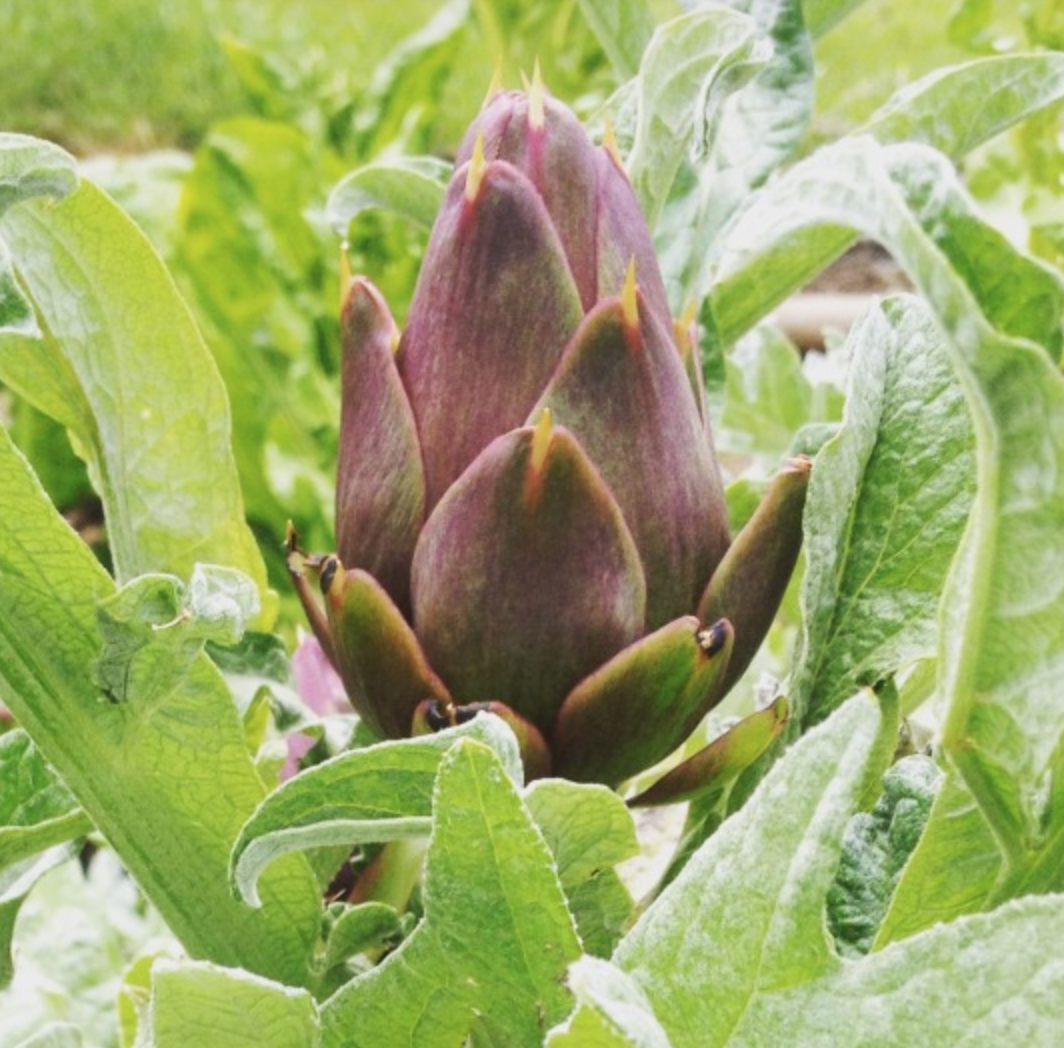 A young artichoke that I planted in my parents’ vegetable patch in Suffolk.