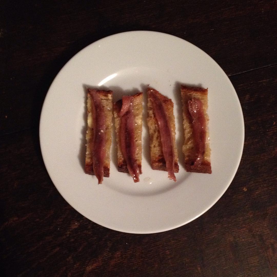 Ortiz anchovy on buttered @brickhousebread toast a la @tobiasanna – though definitely less elegant.. #toast #brownfood (at Peckham)