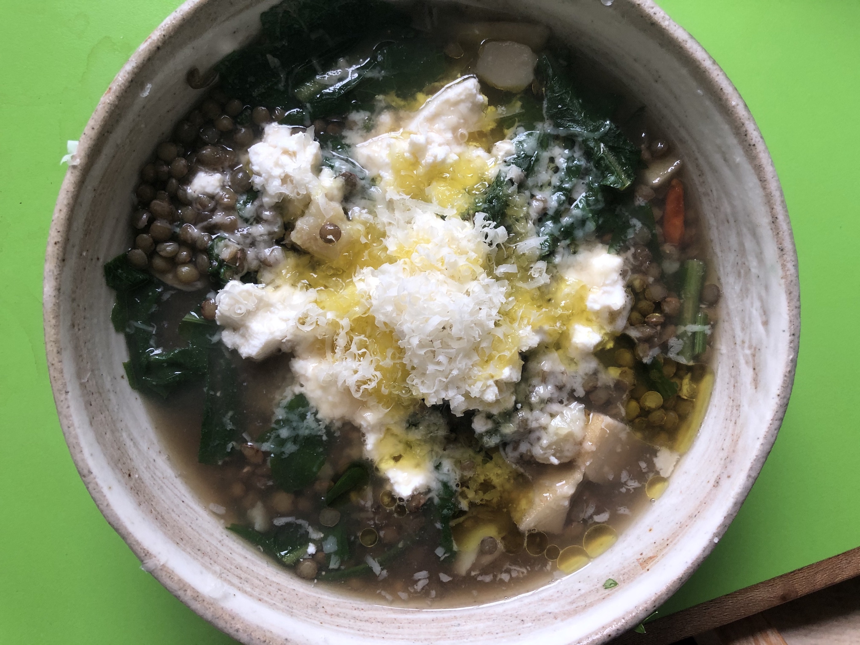 Lentils, Potato and Greens in Broth