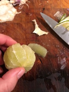 Meanwhile, segment the limes (or other citrus fruit) – give yourself 5-10 minutes to do this.