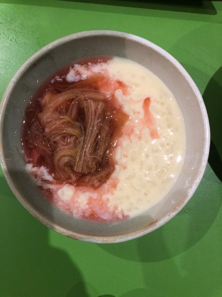 reiz kugel/rice pudding made to Claudia Roden’s recipe with rhubarb – which I made just before Zoe arrived, and which she finished for me by stirring the egg yolks in at the end so the milk takes on a custard-like texture. more on that here and here.