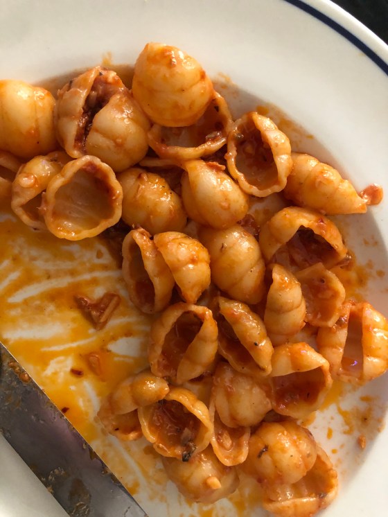 10 minute pasta (anchovy, garlic, tomato paste, olive oil and pasta water emulsion)